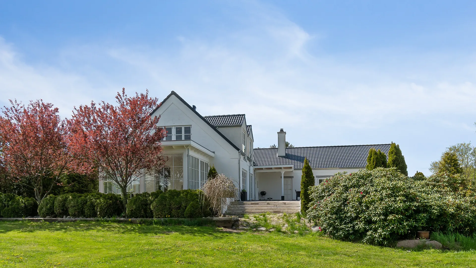 Vores eget projekt, en gennemgribende transformation af en landejendom syd for Aalborg, er et bevis på denne filosofi. Da vi var faldet for udsigten og omgivelserne købte vi landejendommen i 2012 i hvad vi i dag næsten betragter som ungdommeligt overmod. Dette blev startskuddet til en flere år lang, passioneret ombygning og modernisering, der forvandlede et nedslidt hus fra 1920 til en moderne, klassisk “mansion” – og samtidig blev hjemsted for tegnestuen i en årrække.