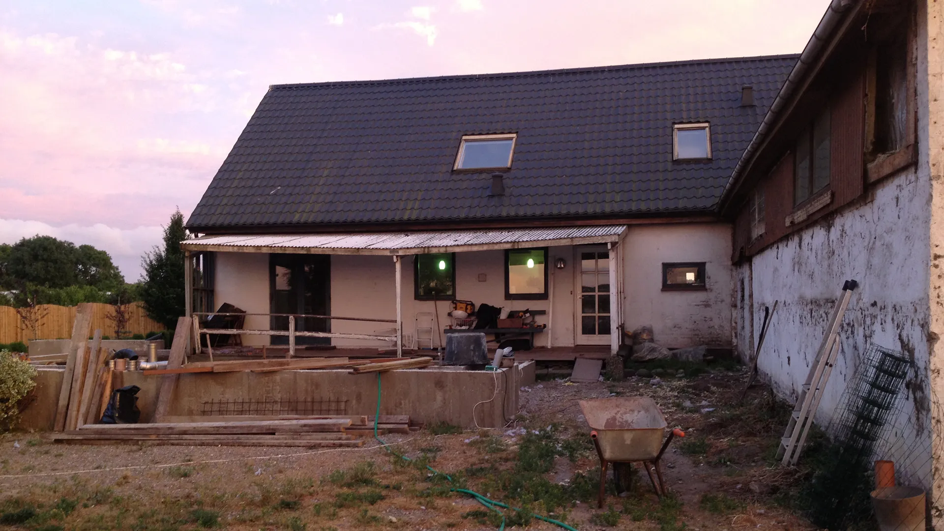 Ejendommen bestod af et hovedhus og en tilknyttet ladebygning, der tidligere havde tjent som både snedkerværksted og gedestald. Med erfaring indenfor byggetilladelser og renoveringsarkitektur blev laden ombygget og godkendt til boligformål, og dannede herefter rammerne for Wichmann Arkitekturs tegnestue.