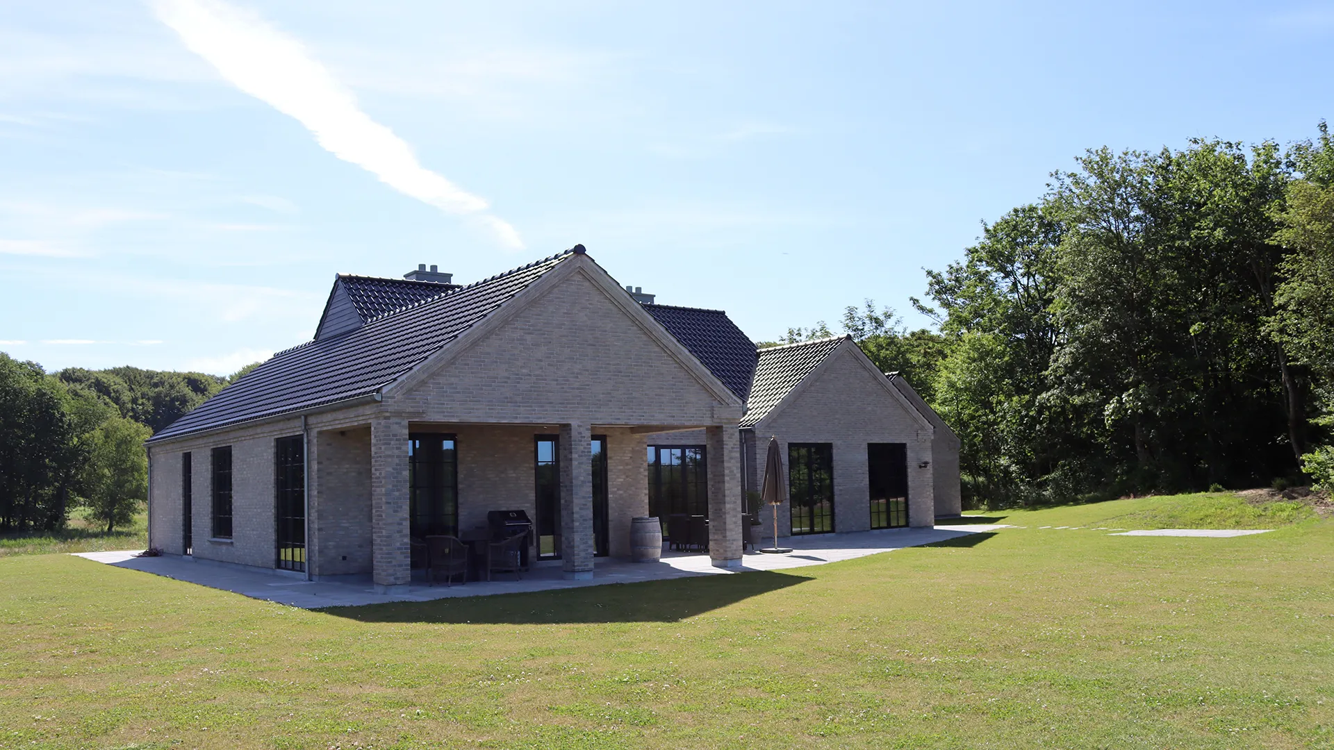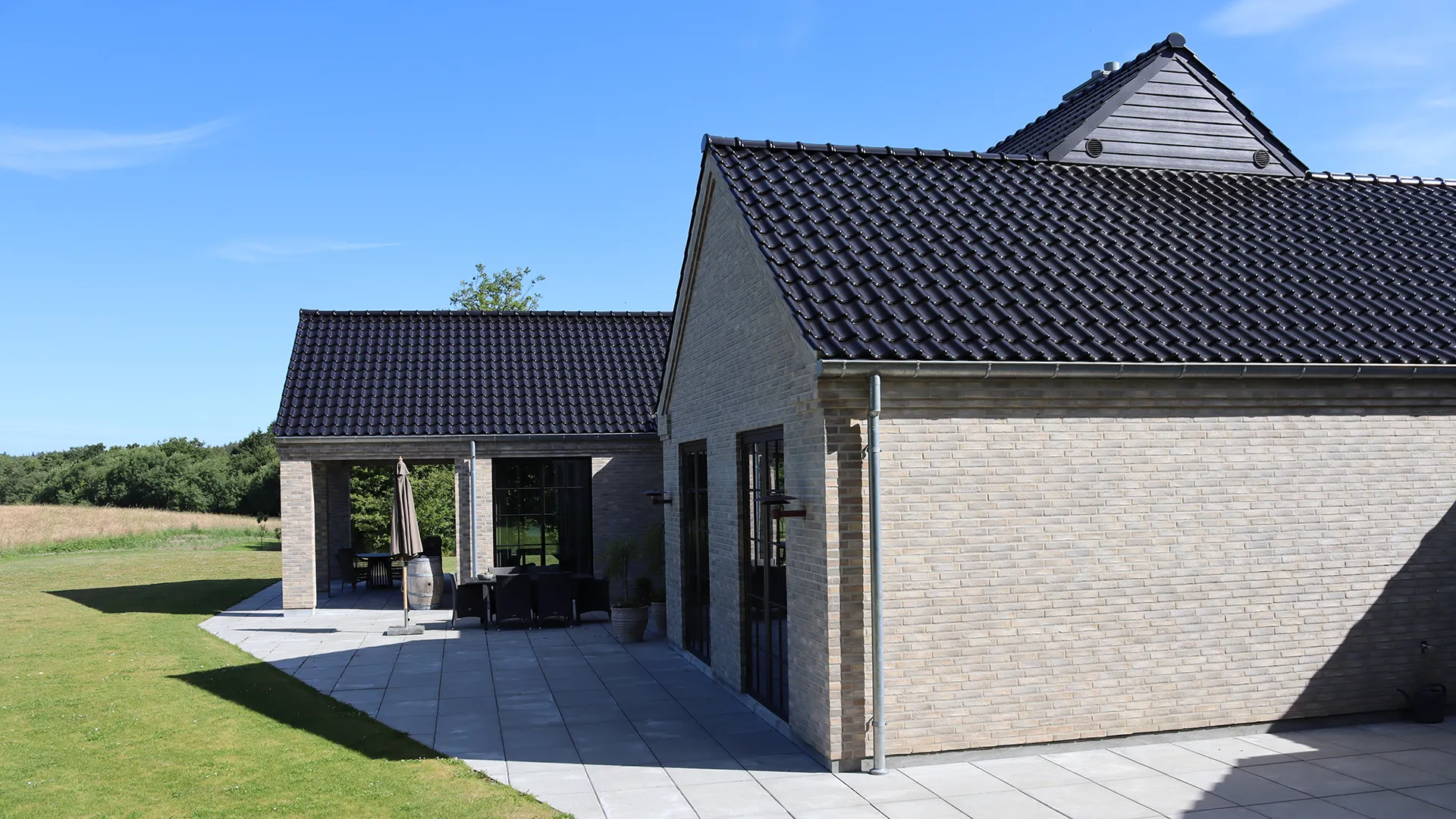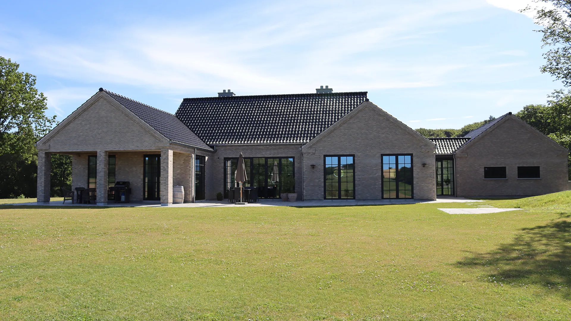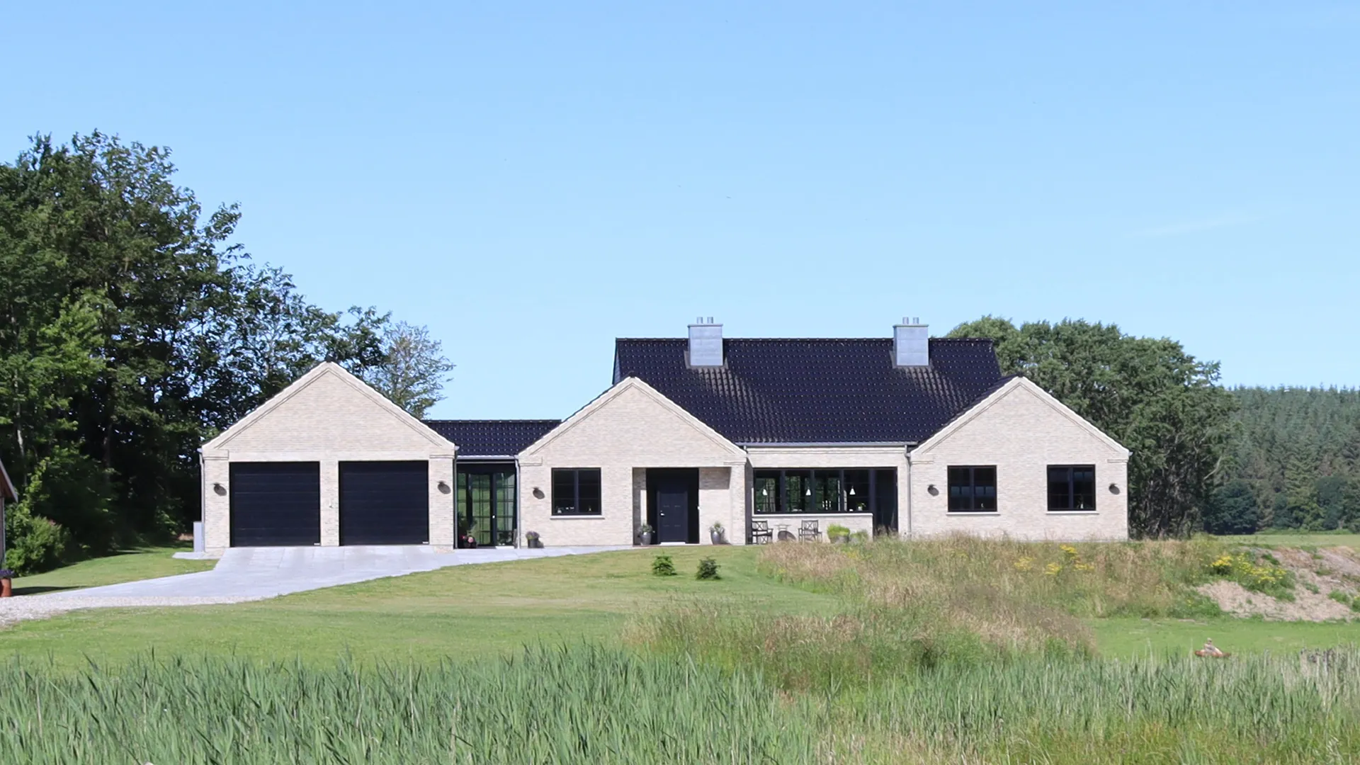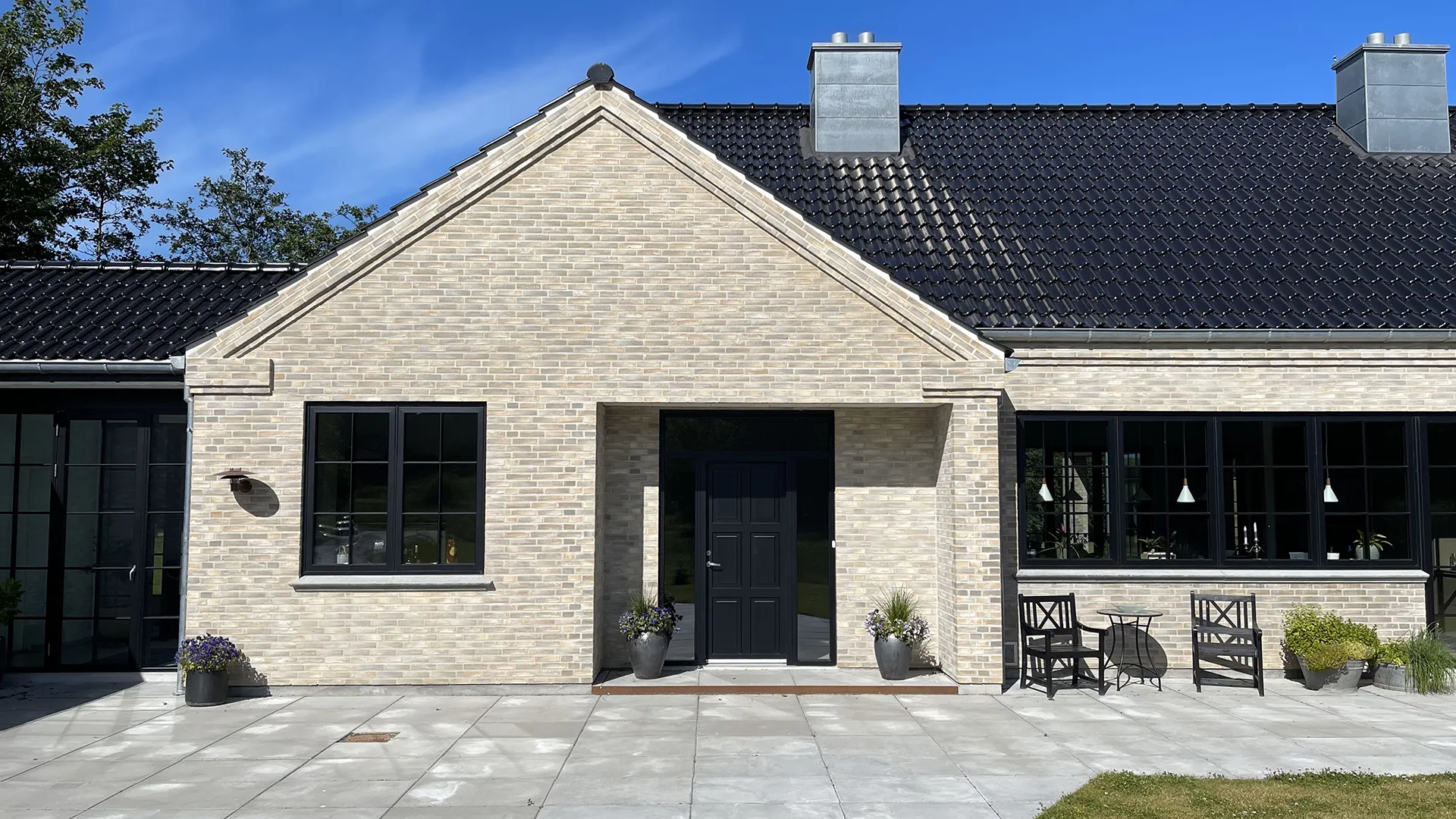 Huset er opført i en robust og smuk traditionel dansk stil, kendetegnet ved at være fuldmuret både inde og ude. Dette valg sikrer ikke blot en enestående holdbarhed og et optimalt indeklima, men bidrager også til husets autentiske og tidløse æstetik. De varme, lyse mursten, suppleret af det klassiske tegltag, skaber et indbydende udtryk, der falder naturligt ind i landskabet. Gesimserne tilføjer en fin detalje, der understreger den håndværksmæssige kvalitet og respekt for traditionen.