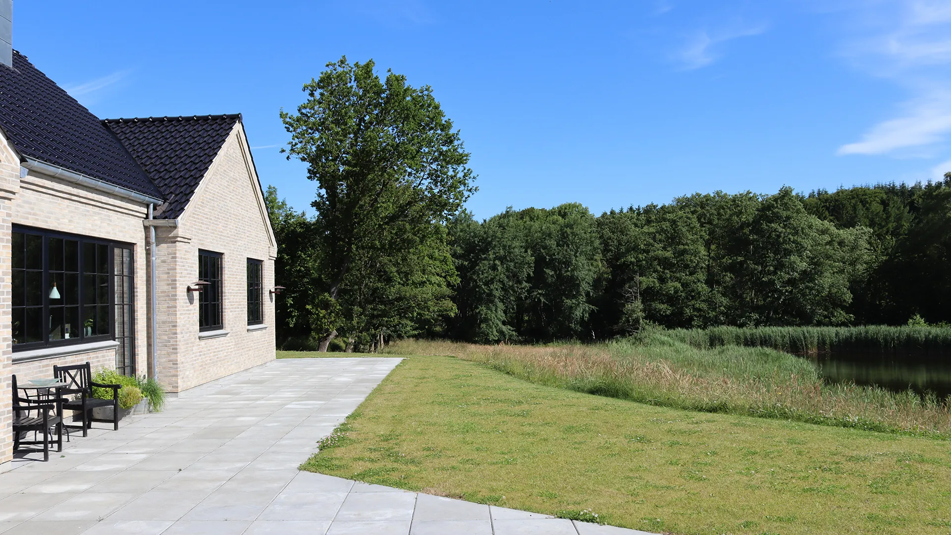 Fra det øjeblik man kører op ad den snoede vej gennem skoven og får det første glimt af ejendommen, er oplevelsen intet mindre end eventyrlig. Huset fremstår som et harmonisk element i de idylliske omgivelser, med en arkitektur der respekterer og hylder dansk byggeskik.